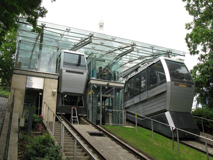 The funicular up to Sacré Coeur is a short line with a station at either end. It saves the 10-15 minute walk up the steep hill, and you can use normal metro tickets for the ride.