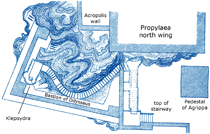 See more images and a plan of this corner of the Acropolis and the stairs to the Klepsydra on gallery page 4. |