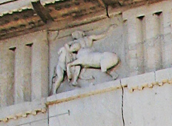 Detail of a reconstruction of the sculptures on the west pediment of the Parthenon, according to a drawing by Karl Schwerzek, 1896 [1]. Acropolis Museum, Athens.