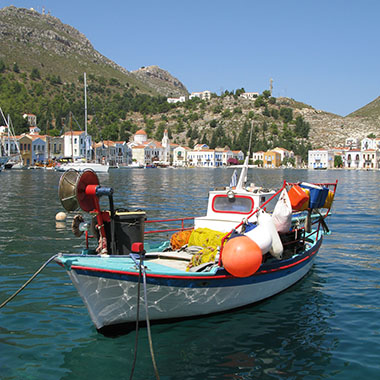 Fishing boat in Kastellorizo harbour, Greece at My Favourite Planet