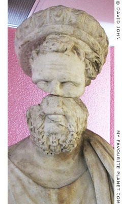 Detail of a marble statue (often referred to as a statue of an agonothetes) thought to be a portrait of the Ephesian Sophist