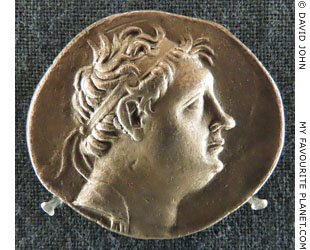 The statue of Zeus Stratios may be the figure on coins of Hellenistic kings of Bithynia minted in Nikomedeia, including silver tetradrachms of Prusias I (Προυσίας ὁ Χωλός, the Lame, ruled circa 230-182 BC) and Prusias II (Προυσίας ὁ Κυνηγός, the Hunter, ruled circa 182-149 BC). The god is shown holding a wreath in his outstretched right hand and a staff in the left ( see image below). |