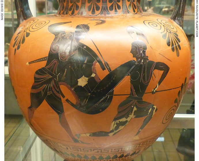 Detail of a black-figure amphora attributed to the painter Exekias with a depiction of