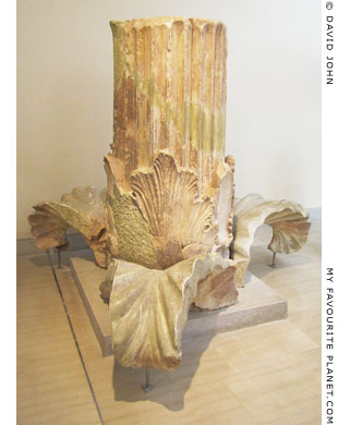 During excavations at Messene, evidence has been discovered of the work and fame of Damophon in his home town and beyond. A 330 cm high Doric column found in the southeast corner of the Asklepieion is inscribed with decrees recording honours awarded posthumously to the artist Damophon, son of Philippos, from seven cities: Lykosoura, Lefkas, Krane in Kephallenia, Melos, Kythnos, Gerenia (on the border between Messenia and Lakonia) and Oiantheia (West Lokris). Specific statues made or repaired by Damophon are mentioned. It is thought that on top of the now missing column capital stood a statue of the sculptor.