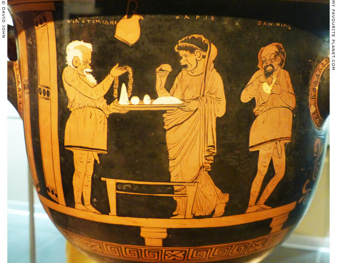 Around 490-480 BC. Attributed to the workshop of the painter Douris. Found in a tomb in Kerameikos, Athens.