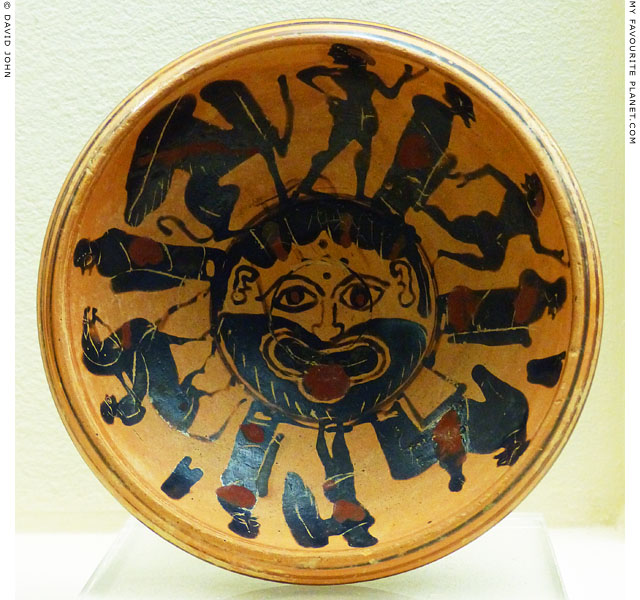 The museum labelling does not mention where many of the ceramics on display were made, but presumably this is locally produced Boeotian ware. As with many Greek painted vases of this period, spaces around the figures have been filled with plant and geometric motifs, which may have had particular significance to artist and viewer, or were merely decorative. The style may appear crude, but it is certainly lively and engaging: confident, vivid and effective graphic art.