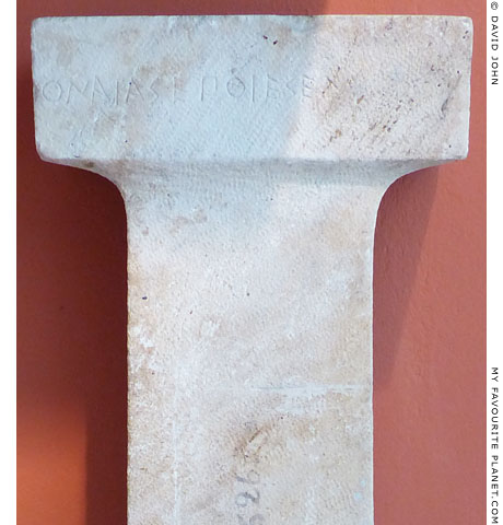 signature of Onatas. Perhaps part of the pedestal on which his bronze Apollo stood.