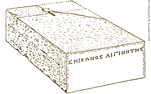 The name on the slab has also been read as Σμίκωνος (Smikon), suggested as an alternative spelling to the name of Onatas' father.